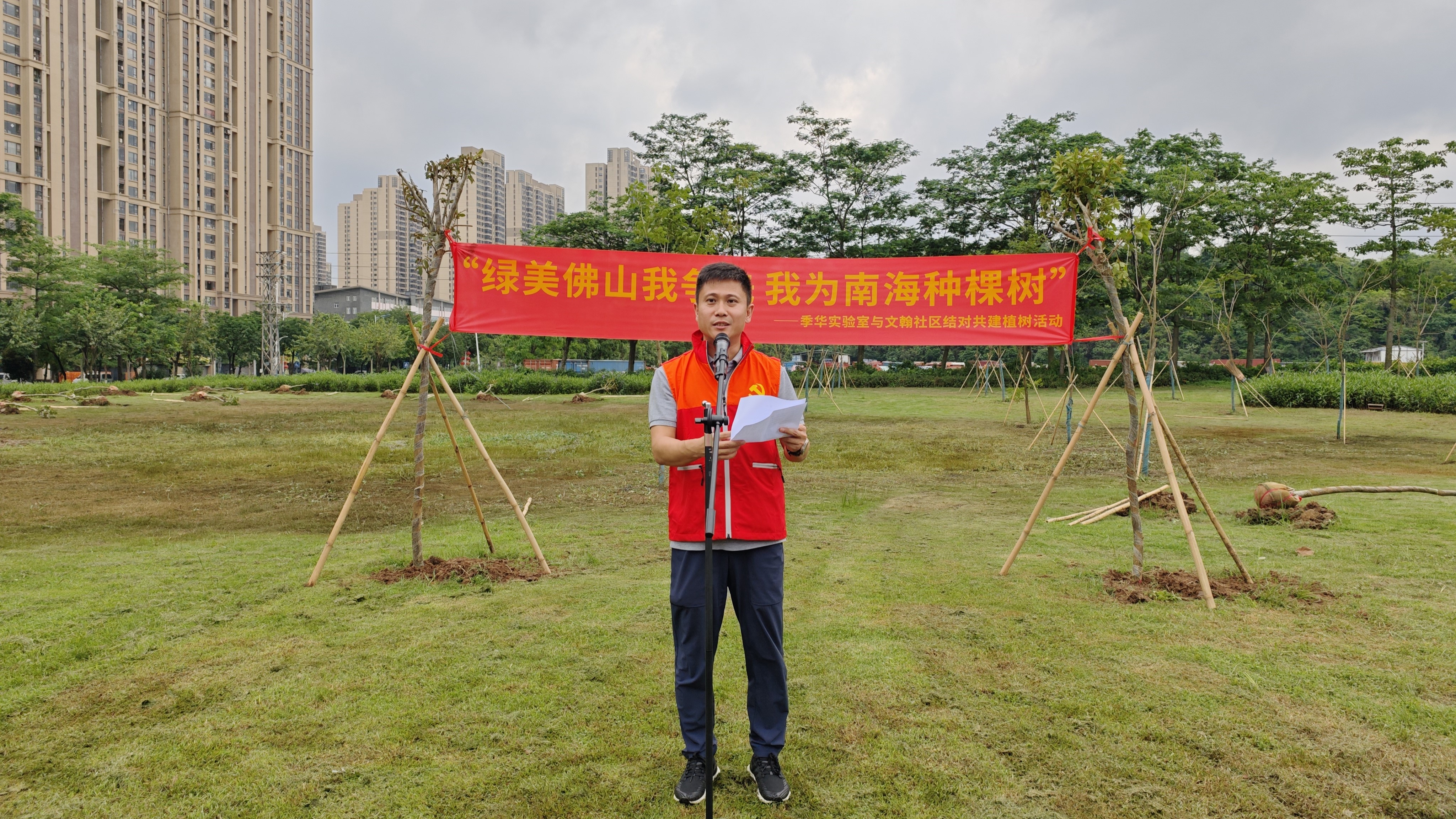 为深入贯彻习近平生态文明思想,全力推进“百千万工程”各项任务落实落地,积极推动广大党员干部在绿化工作中争先锋、做表率,2024年4月29日下午,季华实验室党工团联合桂城街道、三龙湾南海片区建设局、文翰社区,组织60名志愿者,开展“绿美佛山我争先 我为南海种棵树”——文翰社区“季华科创林”植树绿化主题党日活动。桂城街道党建工作办主任陈志垣,三龙湾南海建设局办公室副主任肖何盛,文翰社区党总支书记廖碧霞、副书记植柏泉,季华实验室党委委员王心醉、综合管理处处长辛星出席植树活动。