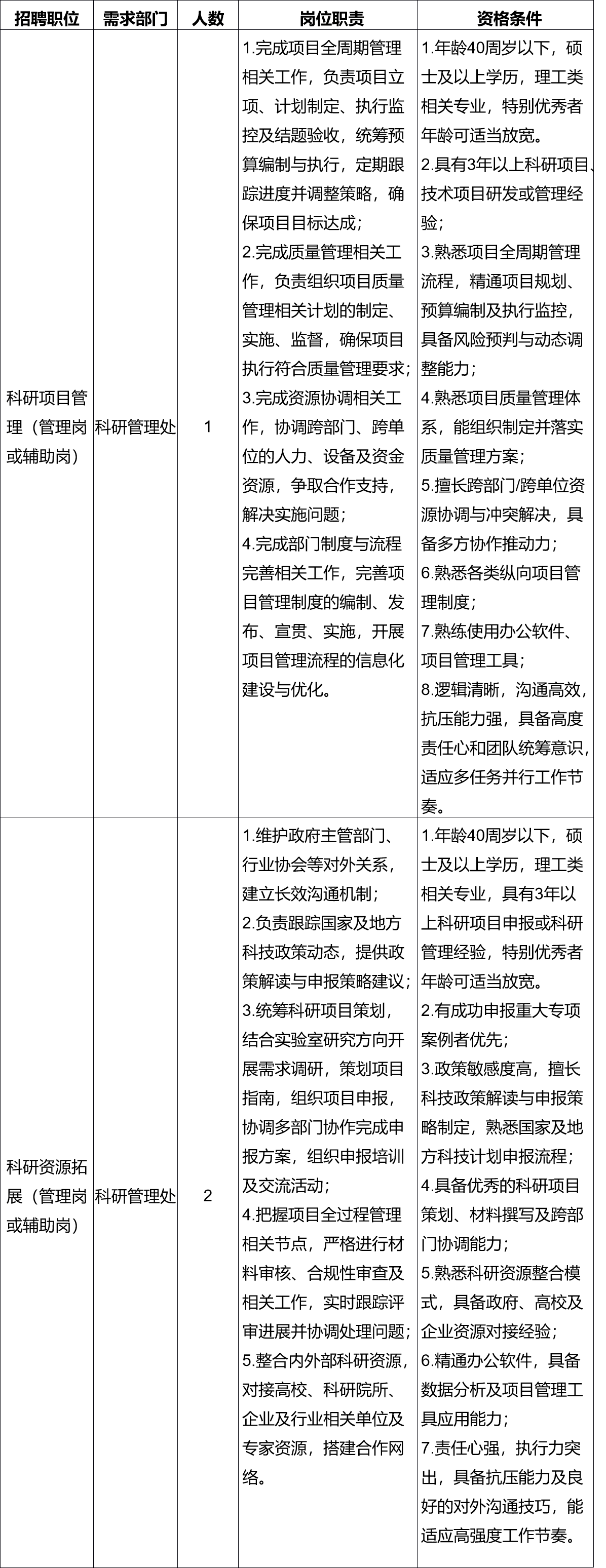 现根据工作需要,实验室管理部门拟招聘如下劳动合同制岗位(以下岗位第二次招聘):