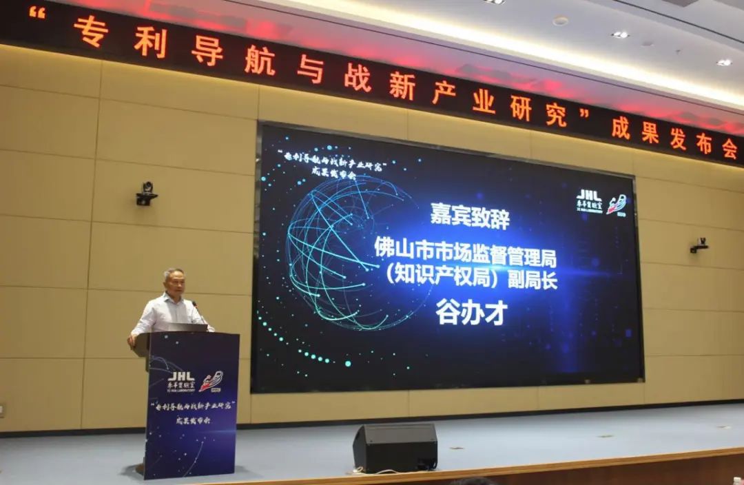 2022年4月27日下午,季华实验室与中国(佛山)知识产权保护中心(以下简称“佛山保护中心”)共同举办“专利导航与战新产业研究”成果发布会,佛山市市场监督管理局(知识产权局)副局长谷办才出席并致辞,季华实验室主任助理李贺军、佛山保护中心主任黄建文以及市、区市场监督管理局相关科室负责人、有关企业、服务机构代表参加了发布会。
