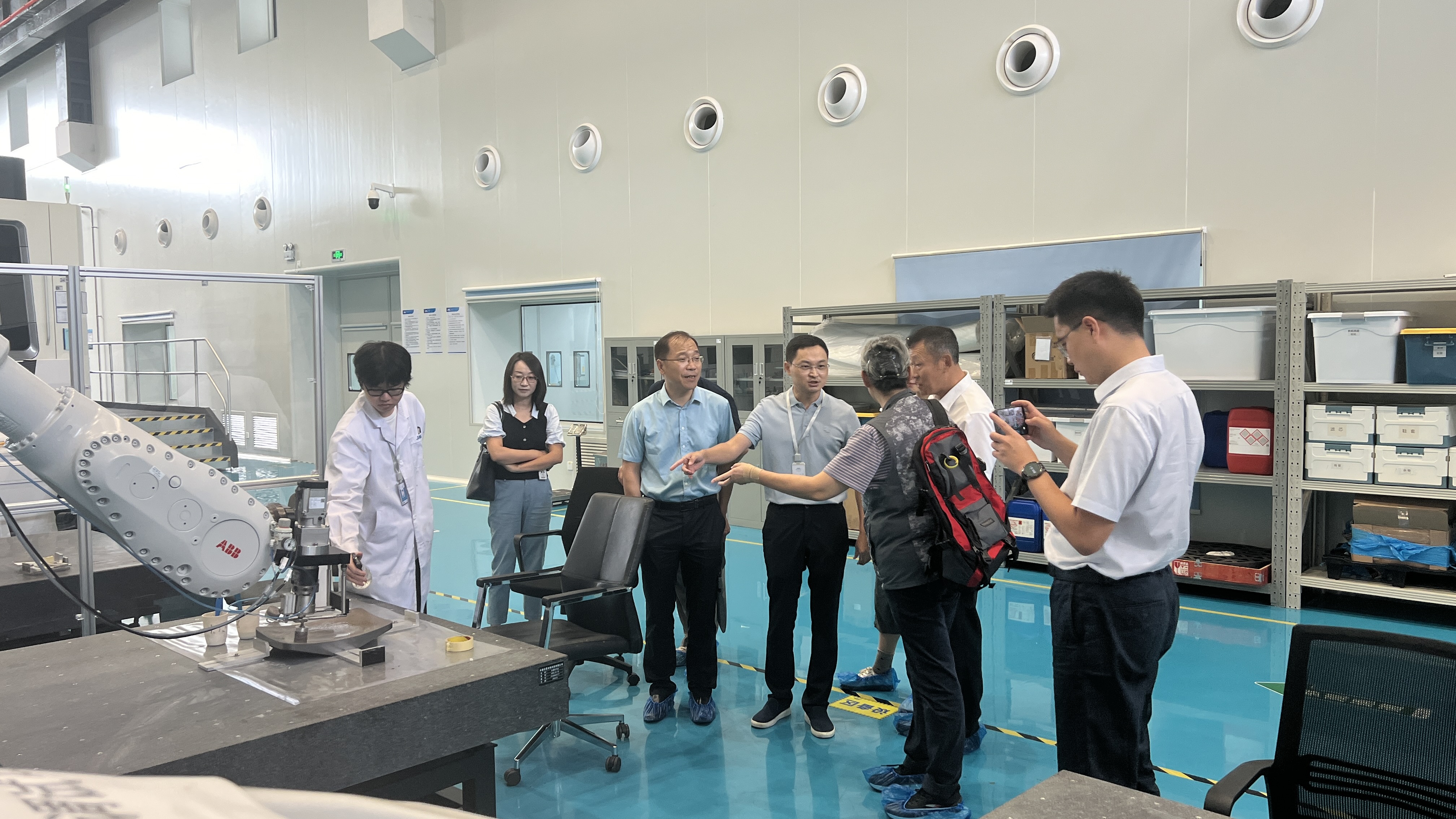 随后,调研组一行到实验室总装中心调研,总装中心主任张鑫研究员详细介绍了中心光学加工、镀膜、检测及系统装调方向的先进技术,以及中心光学产品市场化情况。双方就中心自研设备关键技术进行深入交流。