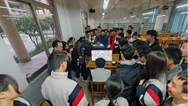 在体验的同时,石门中学的同学们和季华实验室的科普讲师团围绕“人工智能”“分子预测设备”等展开了激烈的讨论,展现出对科学探索的极大热情。交流过程中,讲师团成员发现石门学子们具有丰富的知识储备和多元的认知维度,石门中学的老师们表示,学生们对科学研究尤其是前沿热点非常感兴趣,但类似的科普活动相对较少,希望未来能有更多的科学家走进校园。