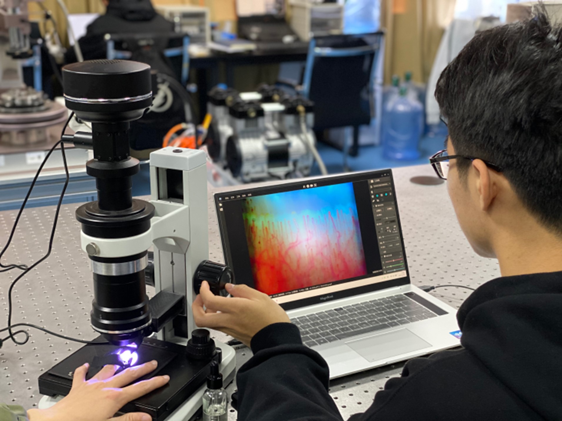 与现有的市场产品不同,本项目研制的光学显微成像仪器能够实现宽场实时显微成像,且成像清晰,有助于医学上开展全局的人体状态检测与健康辨识研究。