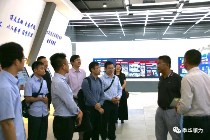 企业代表一行来到季华顺为车间,参观了从量长、裁线、剥皮、预装、压端子、插值、导通检测等全自动生产过程,实现了全工艺流程在生产线上完成,下生产线即可交付客户。是目前市场上第一条真正实现全工艺流程的物流自动输送、品质在线监测、信息实时采集的线束生产线。