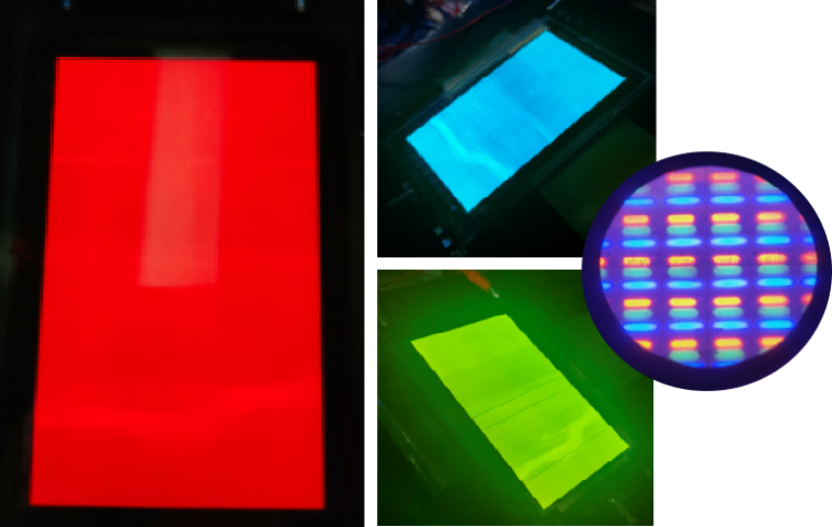 图5. 31吋基板全彩打印点亮测试及图案化展示