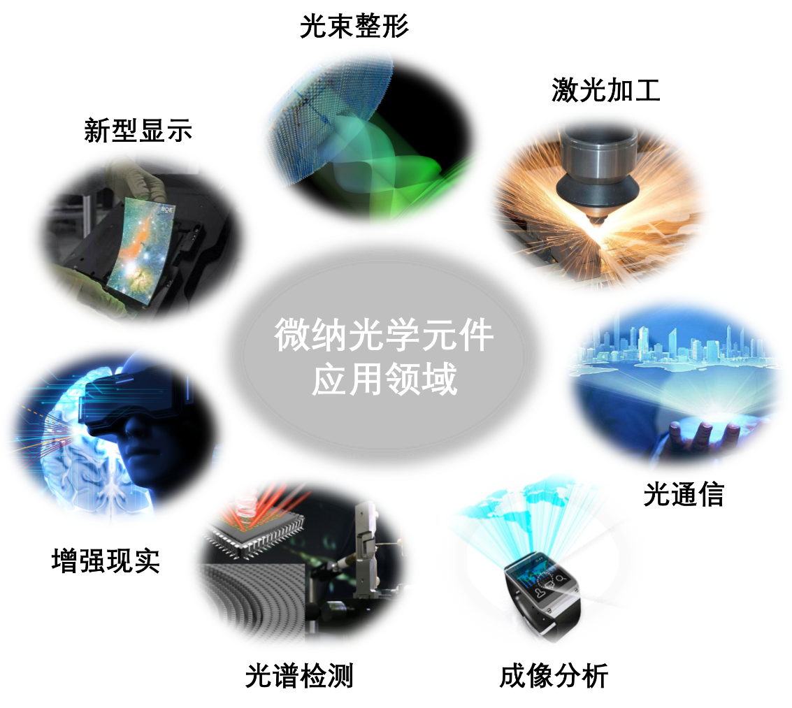 以典型微纳光学元件为牵引,突破微纳光学器件制造的关键性技术,探索大面积微纳光学元件在激光加工、多信息成像、新型显示等行业领域的应用。