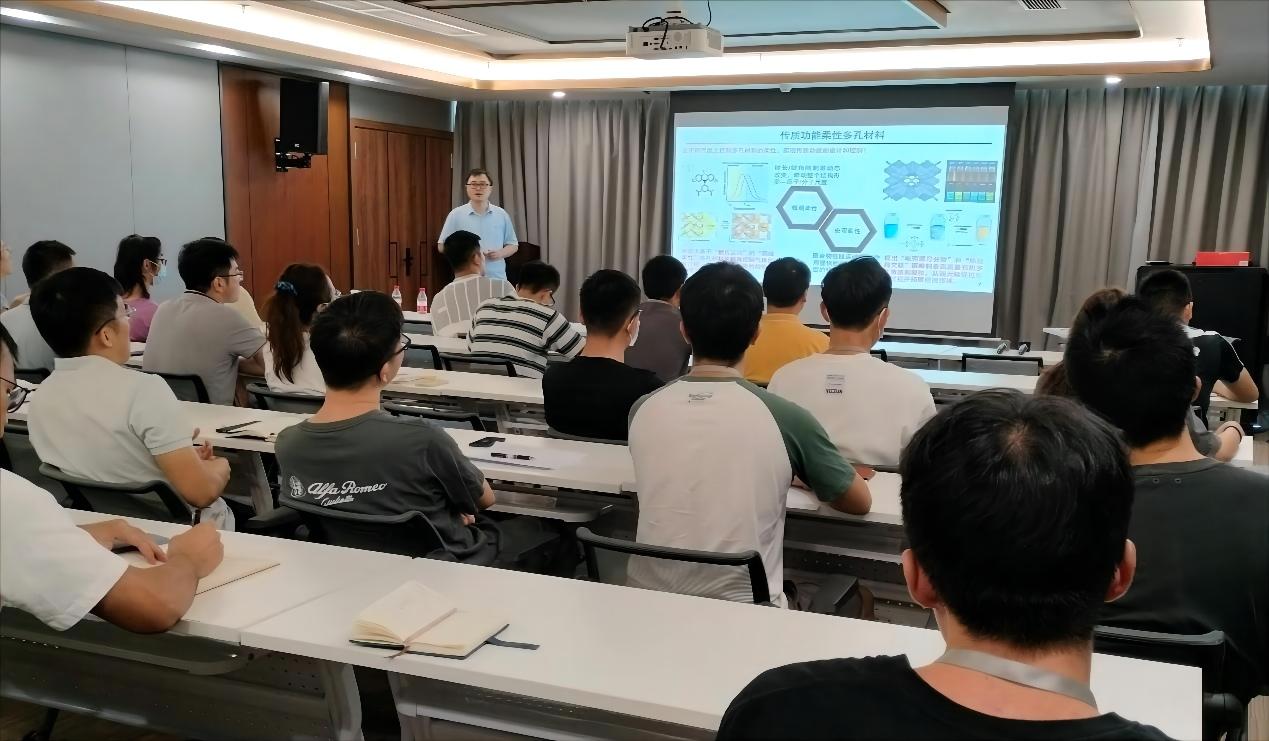 顾成研究员以“传质功能柔性多孔材料”为题作学术报告,介绍了他在《自然》期刊最新发表的成果。柔性多孔材料及其传质过程控制包括:1)创造出基于“翻折运动”的“局域柔性”金属-有机框架(MOF) 材料来精确控制气体扩散过程,实现了极难分离的相似气体的有效拆分;2)通过基于“翻折运动”的“局域柔性”MOFs来控制和放大同位素体之间扩散速率的微小差异,首次通过吸附分离方式实现水同位素体混合物的有效分离;3)提出“电荷诱导分散”和“热致超交联”策略,将有机多孔聚合物(POPs) 材料加工成高质量薄膜和凝胶,从而大幅促进传质过程并拓展应用领域。