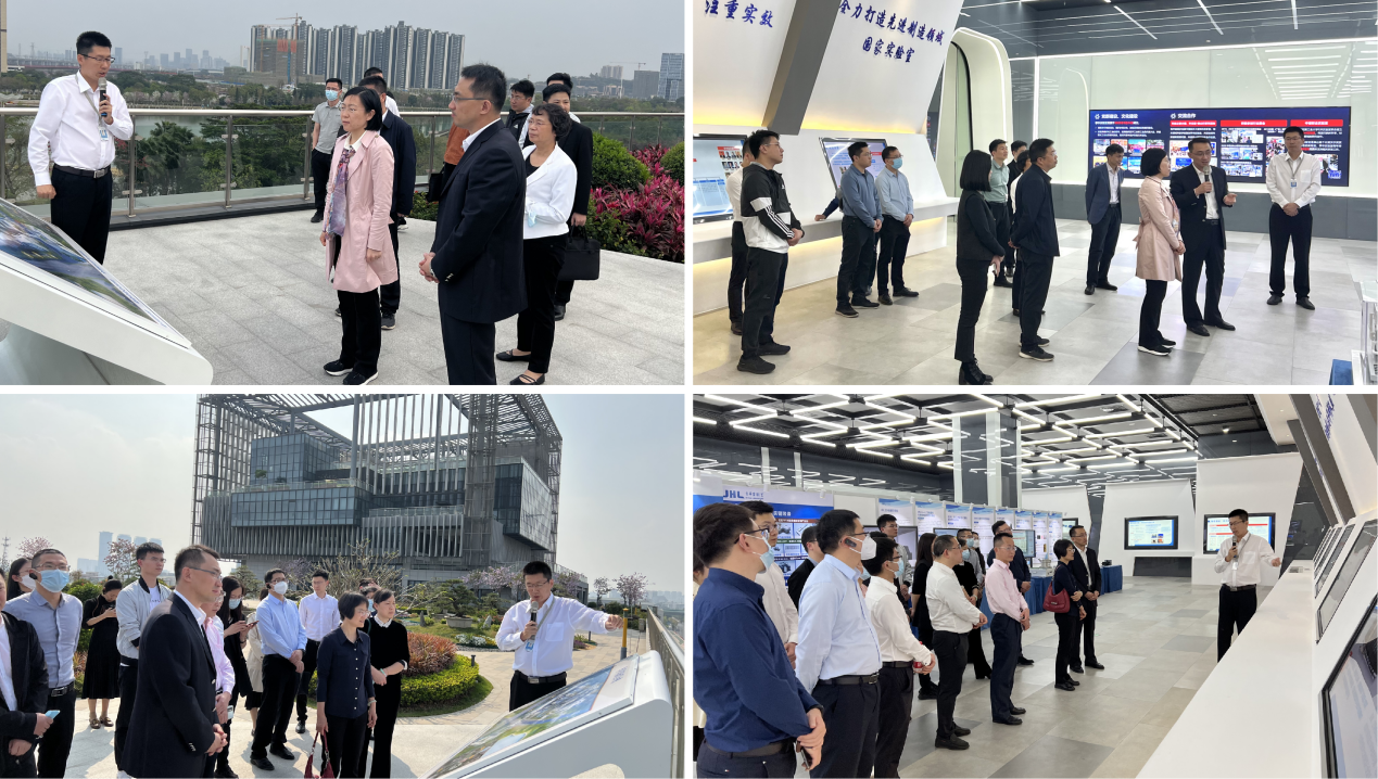 调研组一行先后到季华实验室C区六楼平台和科技成果展厅,了解实验室在人才队伍、平台建设、科研工作、成果转化、制度创新等方面的建设成效及各项代表性科研成果。孟徽为调研组一行详细介绍了实验室与韶关在相关产业方面的交流合作情况。