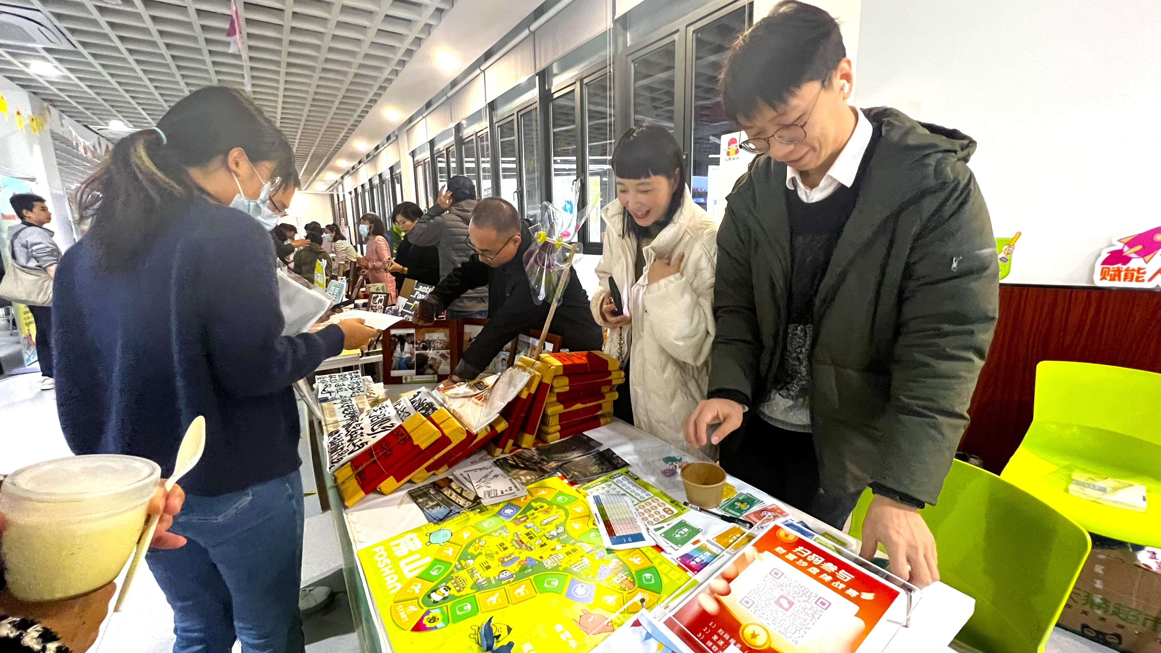 当天,佛山市公共文化促进会联合季华实验室工会,在季华实验室B区开展了主题创意市集,结合广府文化、工匠文化、广电服务等多元文化资源,把换书市集、数字资源活动、木板年画、武术功夫、佛山美食等体验活动齐聚在园区内,为员工带来丰富的佛山文化体验。年画、剪纸、美食、武术……企业文化家在实验室中赓续了广府文化的文脉,让来自五湖四海的实验室员工体会到了源远流长广府文化的独特韵味。