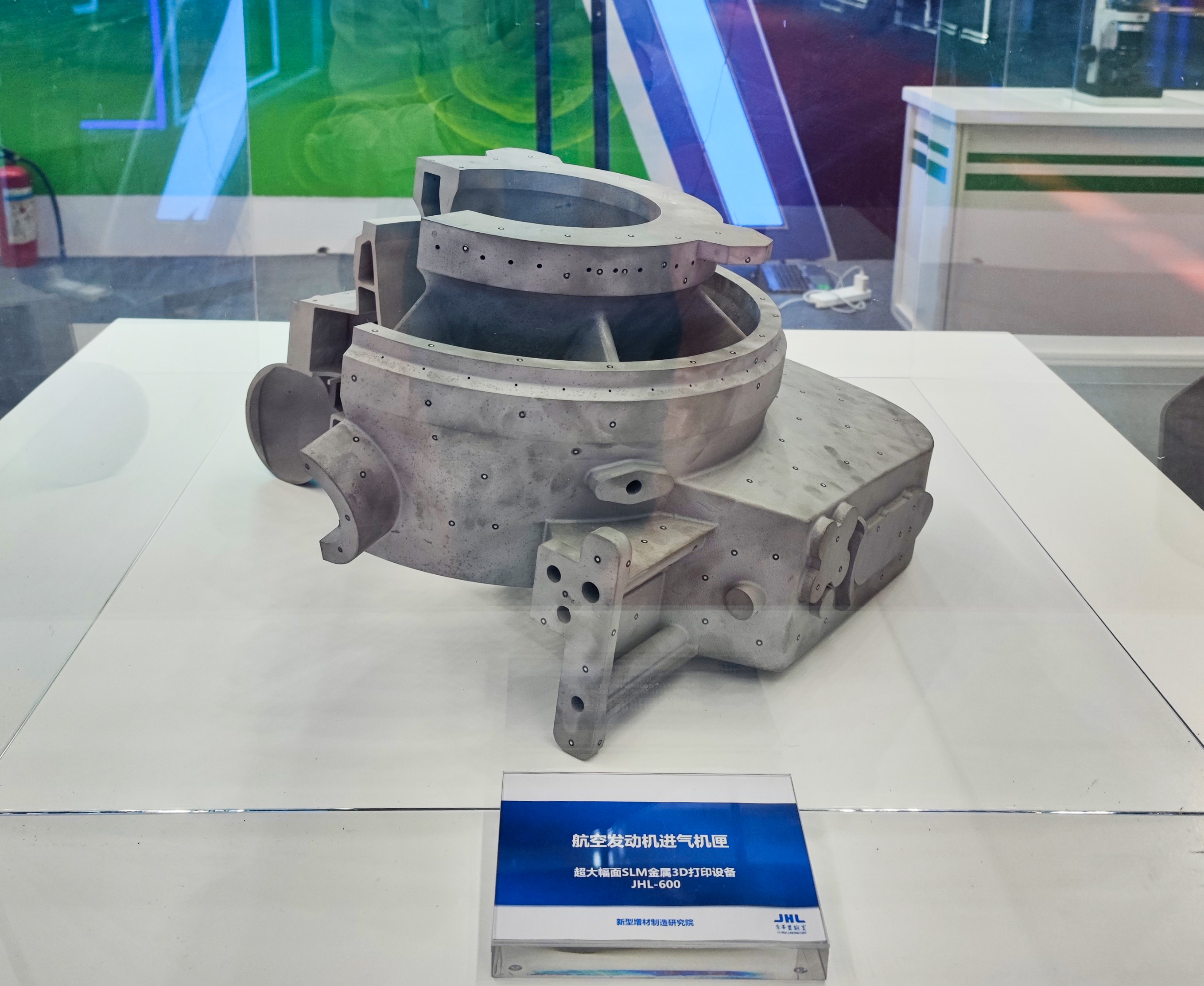 在增材制造领域重点展示了“增材制造助力航空航天关键构件研制”项目,利用该项目研发的JHL600超大尺寸增材制造装备打印航空航天关键构件,结合多激光扫描及大层厚成形工艺,可大幅缩短构件研发周期。