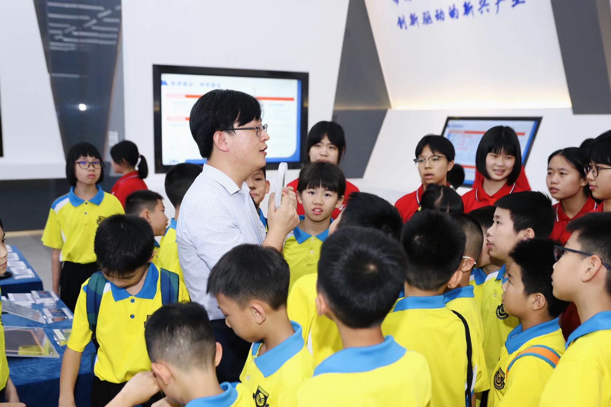 在科技成果展厅和科普画廊,科普志愿者为学生们详细讲解先进制造科学与技术的相关知识,并分享季华实验室的建设历程,活动现场气氛热闹。