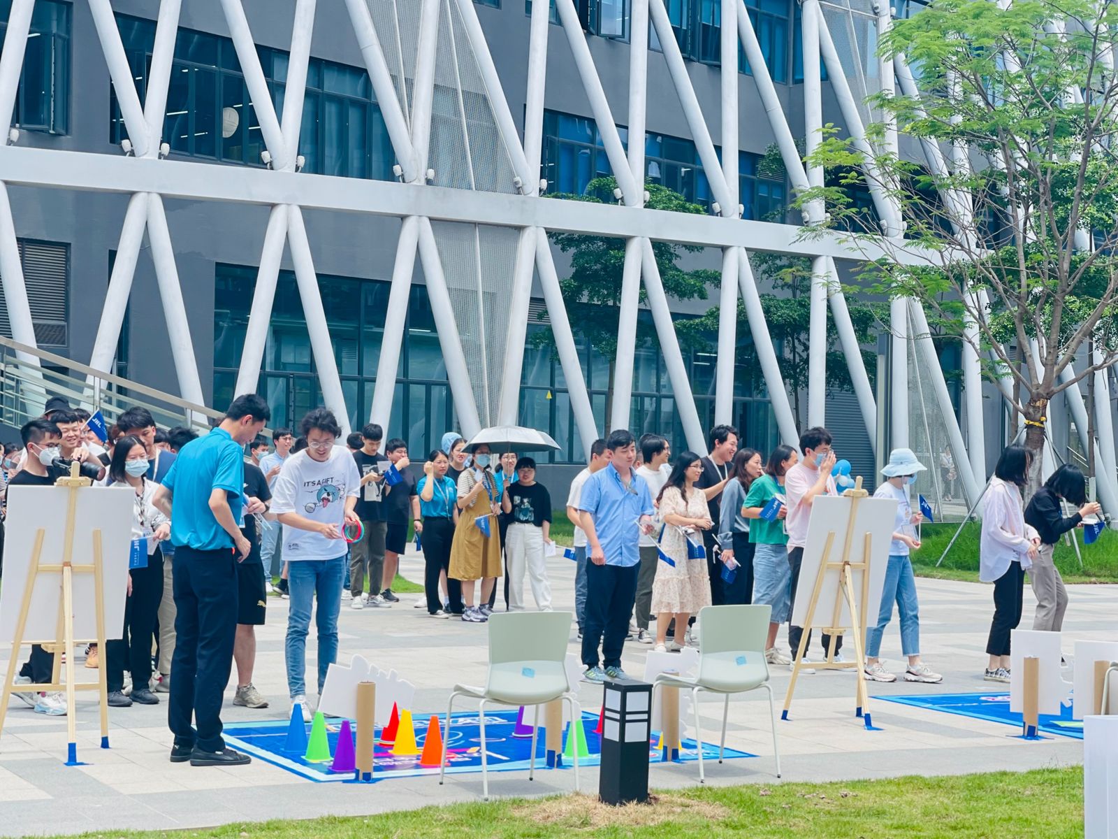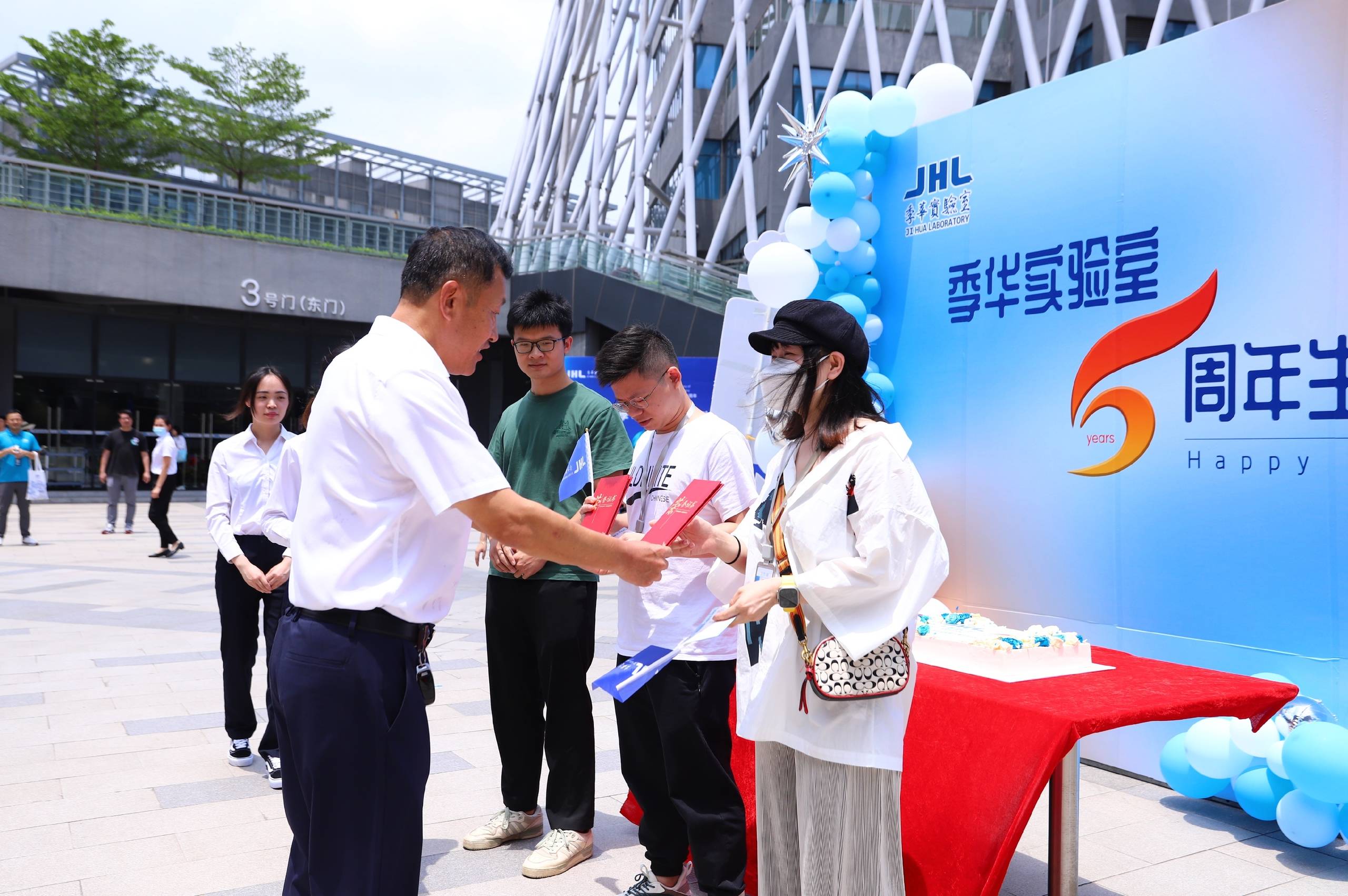 5月4日上午11点40分,季华实验室五周年生日庆典活动在B区广场举行。员工们欢聚在一起,共同庆祝实验室五周年的生日。