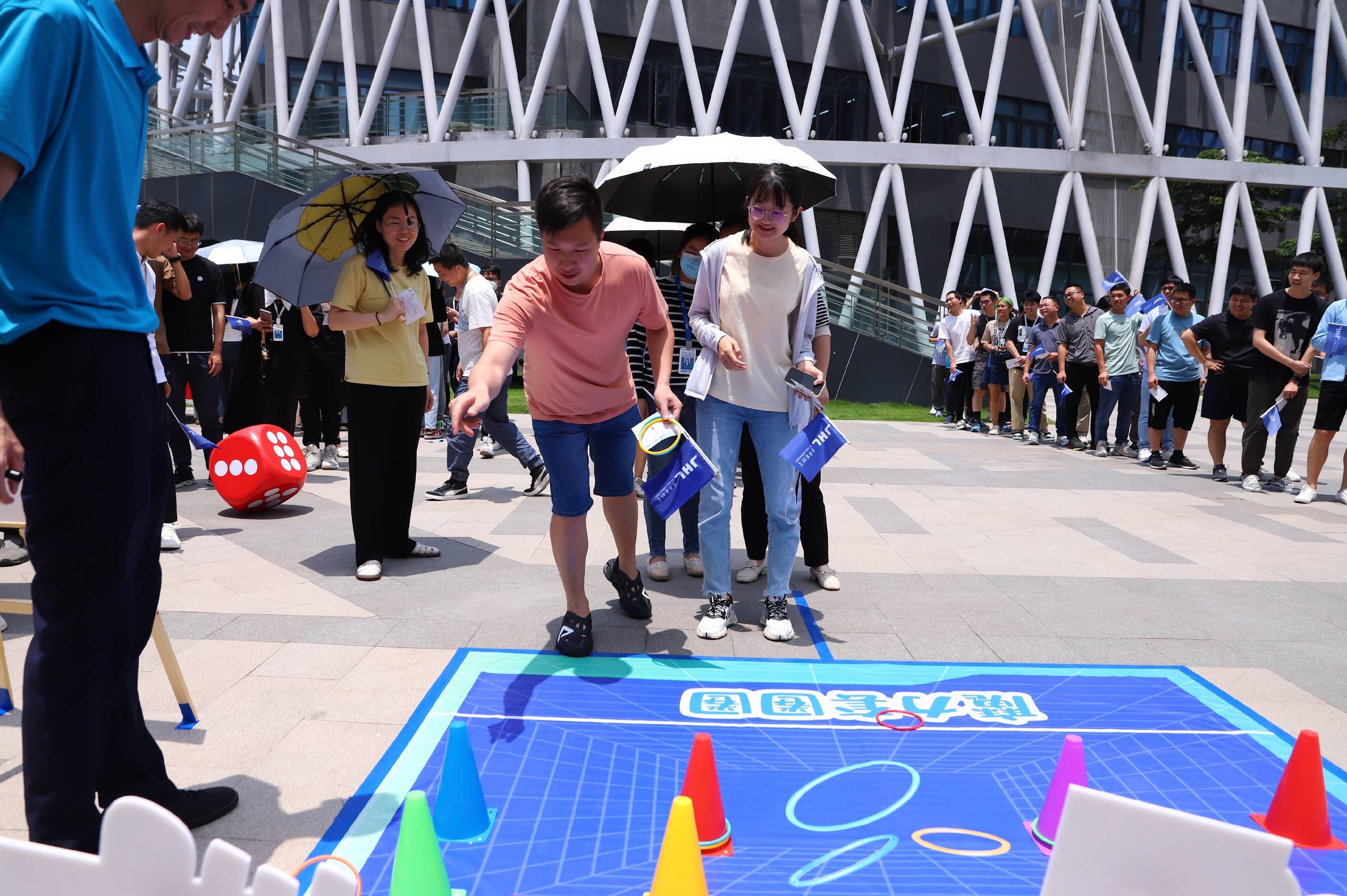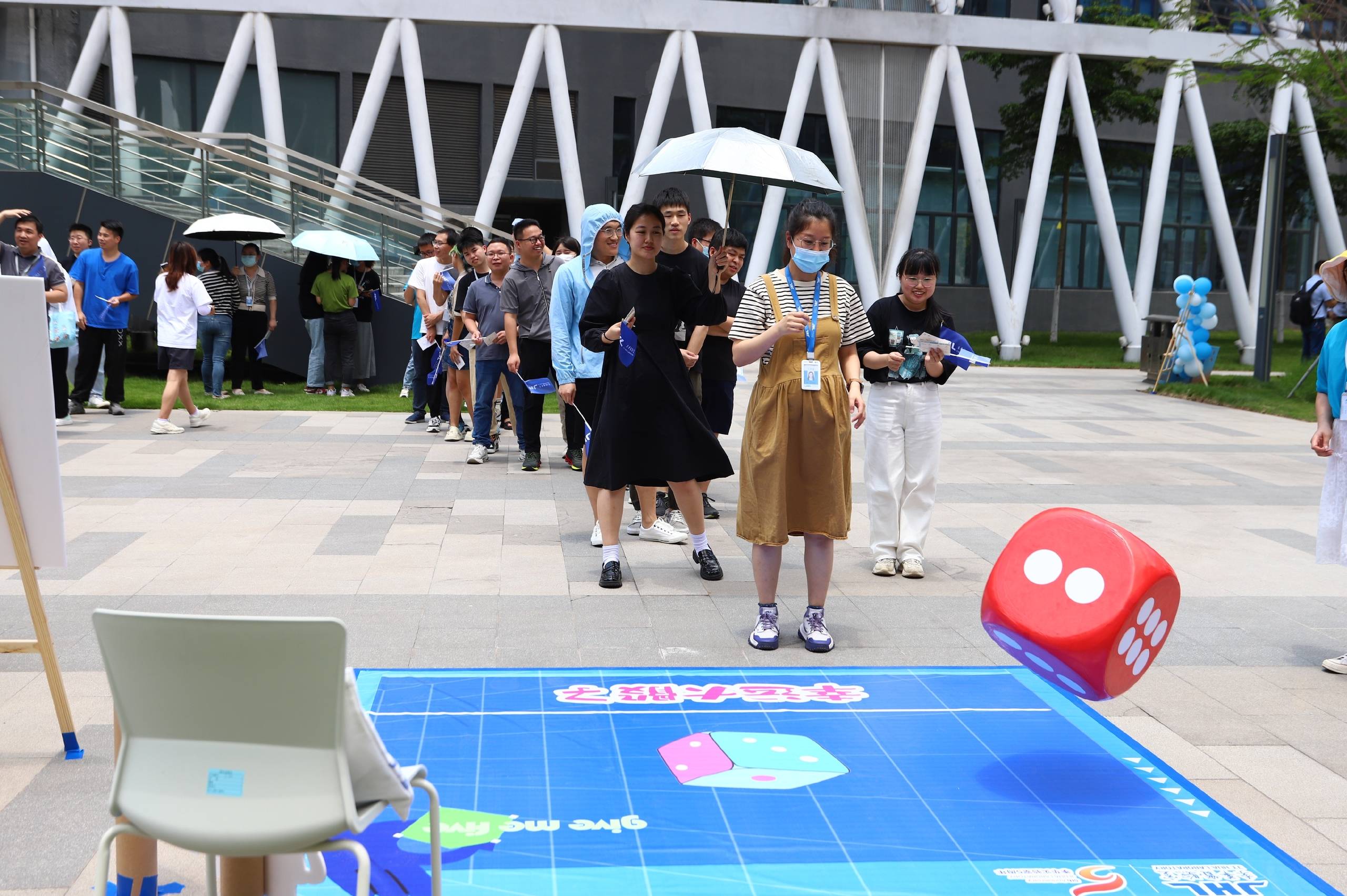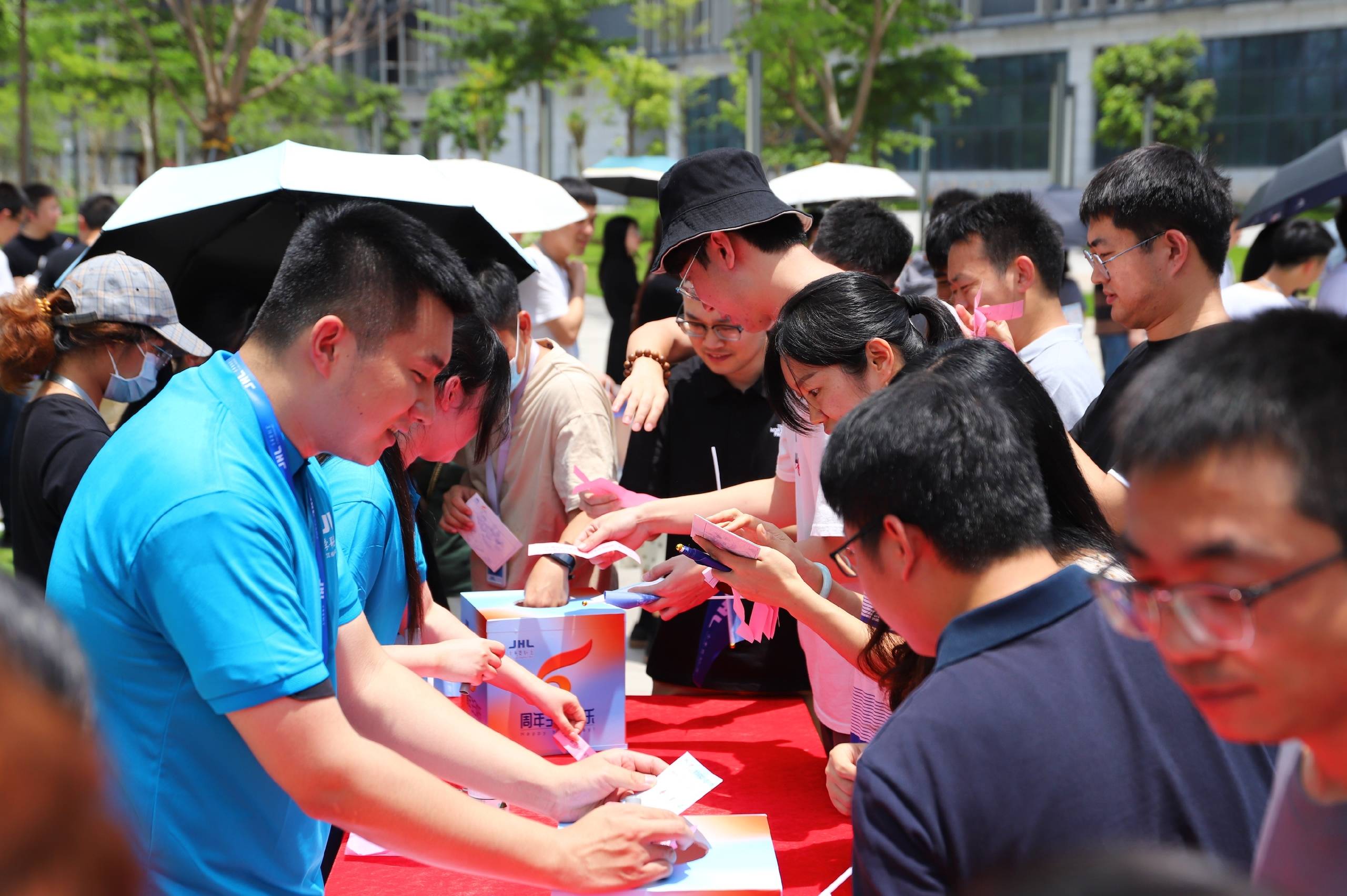 本次五周年"庆生"活动还同步设置了互动游戏区、拍照打卡区、茶点休闲区。员工们积极参与到活动当中,现场气氛热烈。