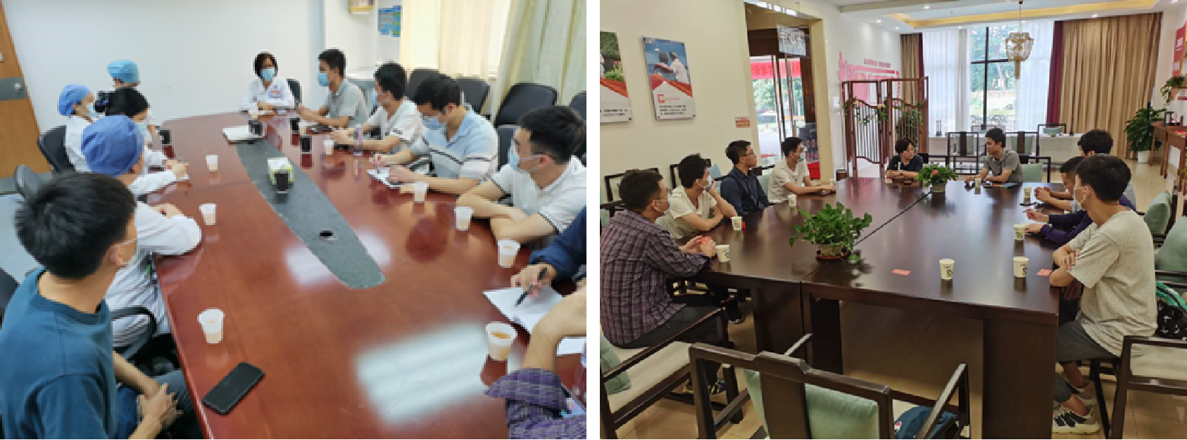 △左:团队在广东省人民医院老年医学研究所调研交流;右:团队在佛山九如城康养中心调研交流。