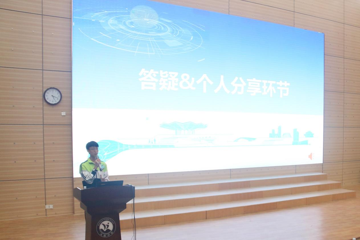 讲座结束后同学们意犹未尽,举手说出了自己的疑惑:人工智能的智商可以赶超人类吗?光速飞船在未来是可行计划吗?除了分子和原子外是否发现过其他新物质?能不能预测下中国未来的发展方向?