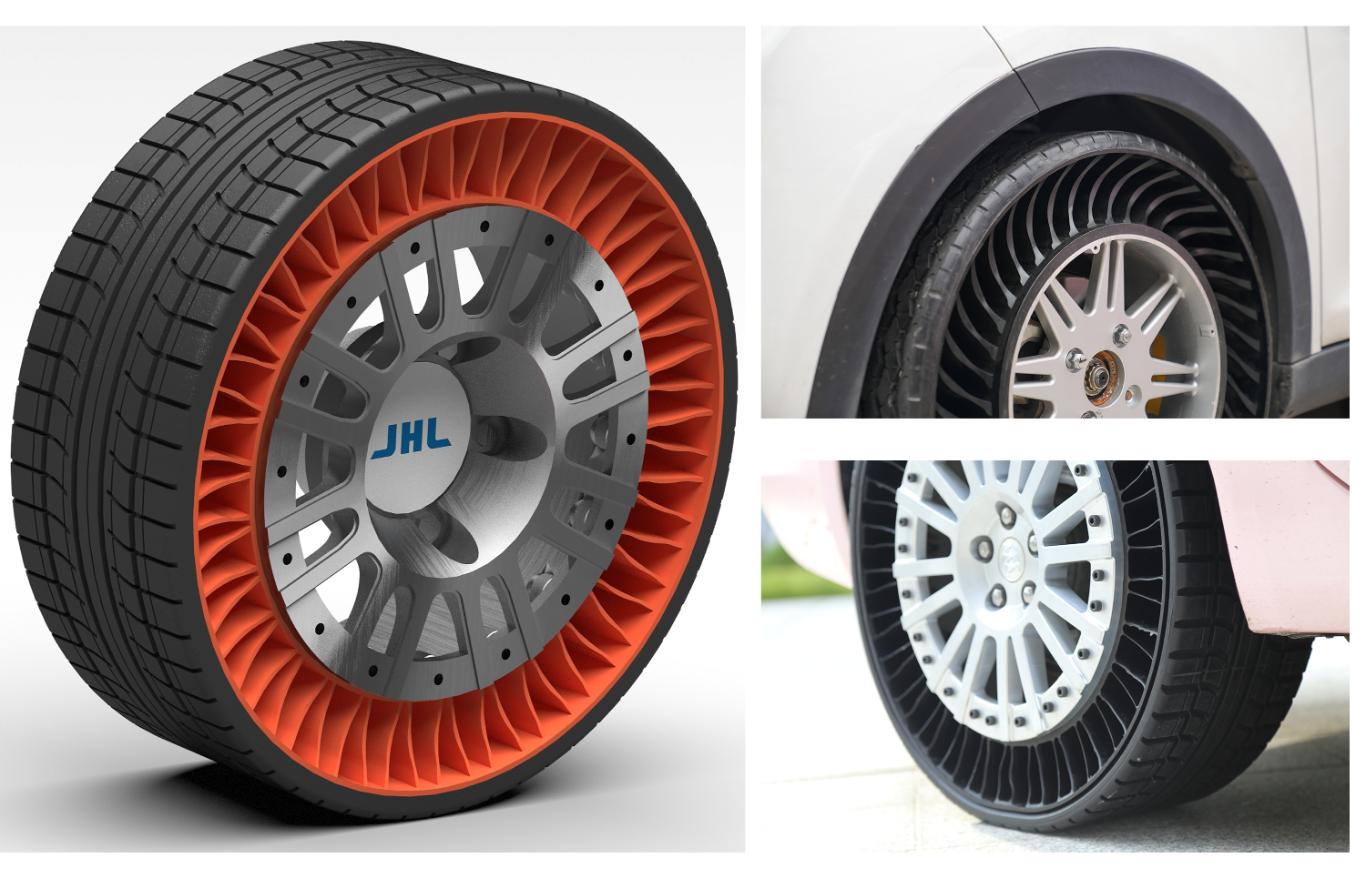 非充气弹性支撑轮(Air-less tyre with elastic support, ALTES),是指采用弹性支撑体取代充气轮胎胎压作用,镂空不低于50%,且行驶性能媲美甚至优于充气轮胎的一类高性能轮系统。相比于传统充气轮胎,非充气弹性支撑轮正以其独特的结构设计理念和材料创新性能,引领着轮胎行业向更绿色环保、安全可靠、免维护以及多应用领域的方向发展,成为了一场令人瞩目的技术变革。