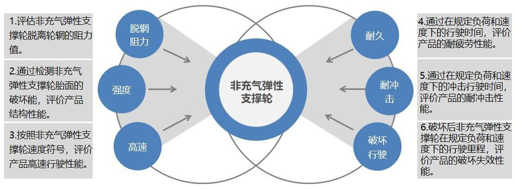 作为一种新兴产业,虽然已经形成一定规模,但国内外尚未形成统一的非充气弹性支撑轮相关标准。并且,非充气弹性支撑轮与充气轮胎在结构上有较大不同,性能要求也不能一一对应,传统充气轮胎的产品标准、术语与定义、测试标准等有关标准并不能适用于非充气弹性支撑轮。因此,加快非充气弹性支撑轮相关标准的研制,对促进中国轮胎行业产业升级具有十分重要的意义。