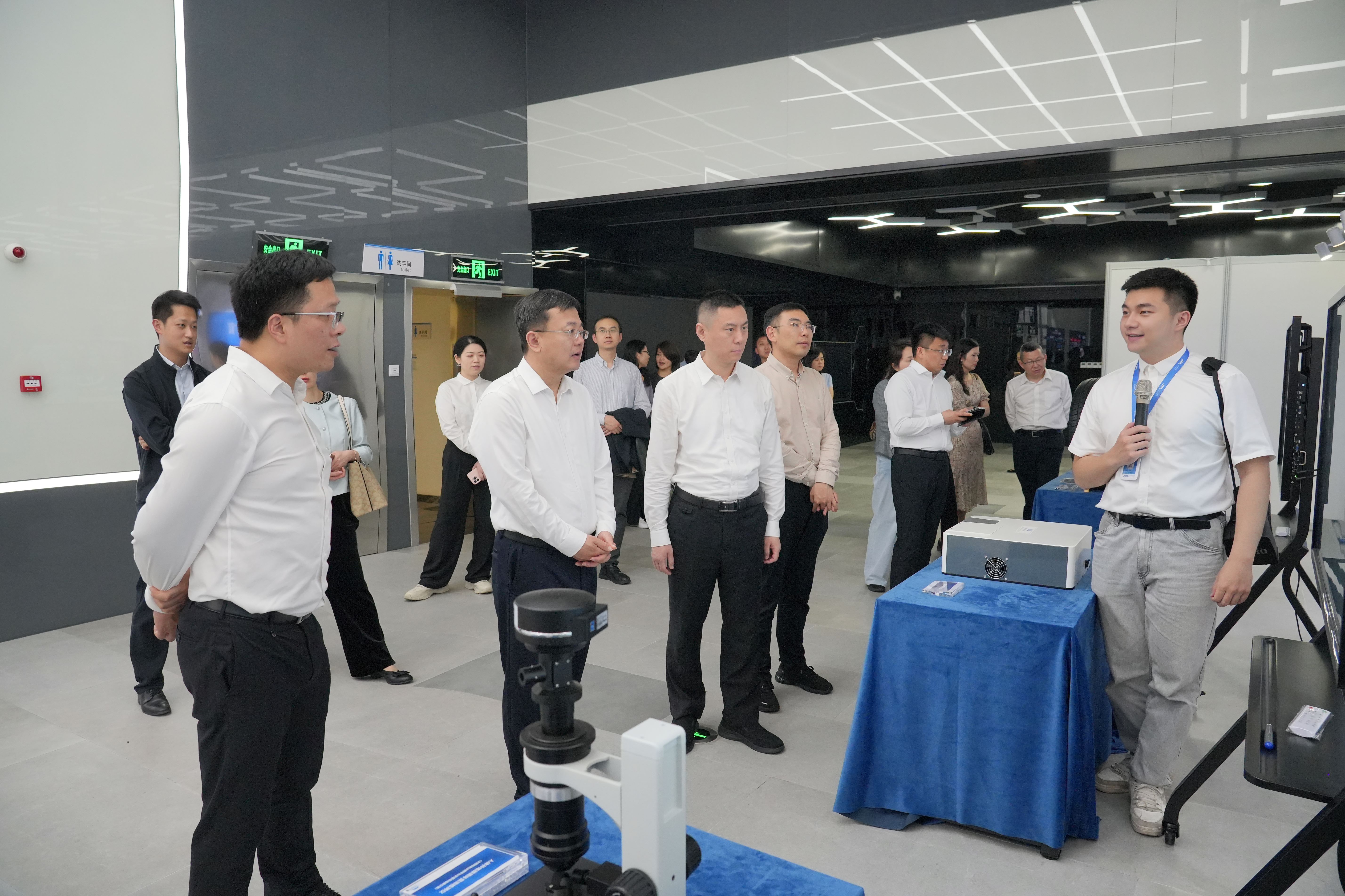 调研组一行详细听取了近年来南海片区的发展建设成效和持续吸引科创要素荟聚三龙湾,营造海外人才创新创业环境,打造佛山青年友好科技城的各项举措。随后,调研组一行到季华实验室C区六楼平台,了解实验室周边环境和园区的整体建设情况。在科技成果展厅中,调研组一行详细了解了实验室在人才队伍、平台建设、科研工作、成果转化、制度创新等方面的建设成效及各项代表性科研成果。