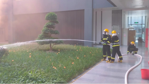 季华实验室在园区内进行消防安全演习